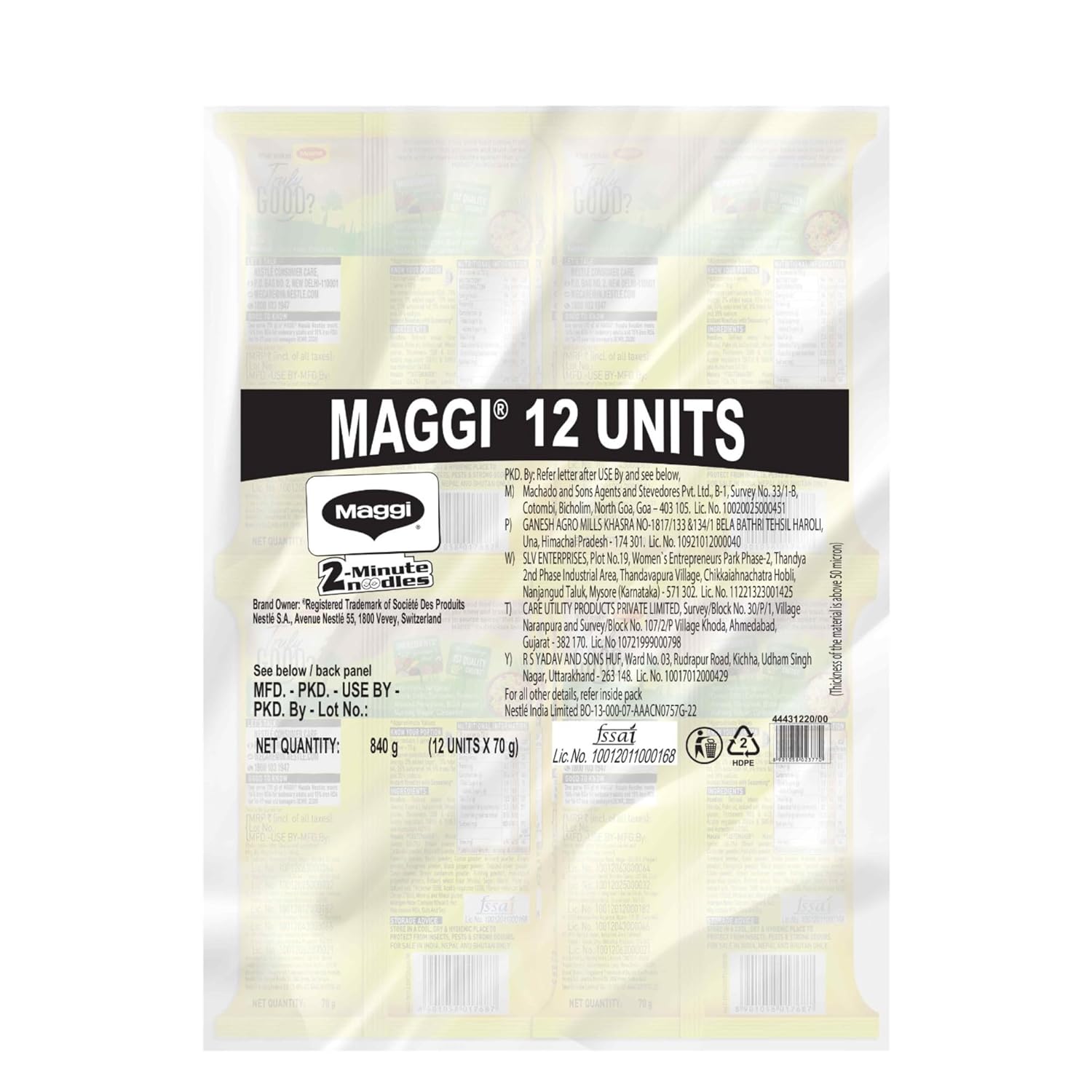 2-Minute Instant Noodles,Masala Noodles With Goodness Of Iron,Made With Choicest Quality Spices,Favourite Masala Taste, 840 g Pouch (Pack of 12, 70 g each)